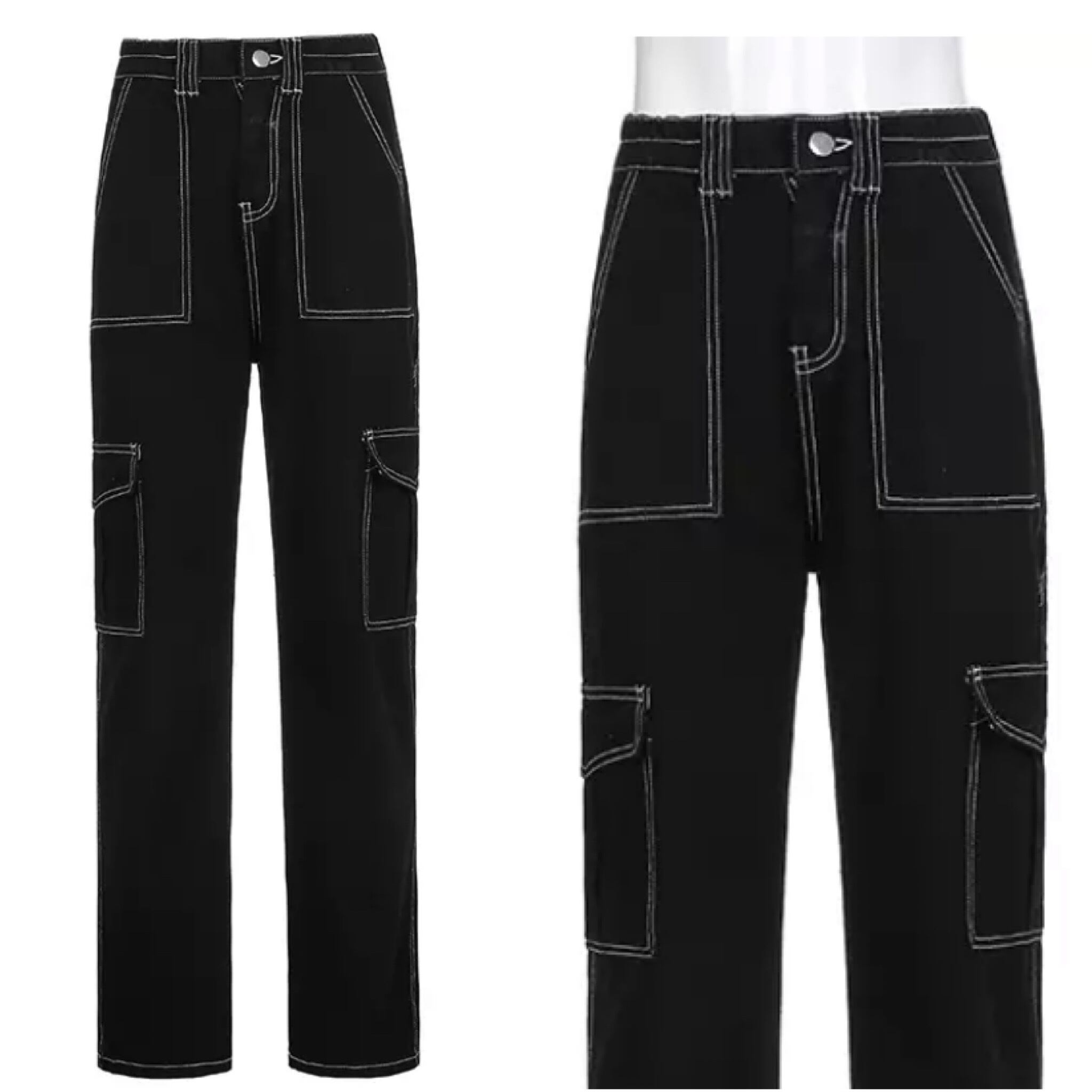 コットン素材、ホワイトステッチがポイントのバギーパンツ。トレンドのワイドなバギーデザインで、こなれたストリートファッションが楽しめます。
