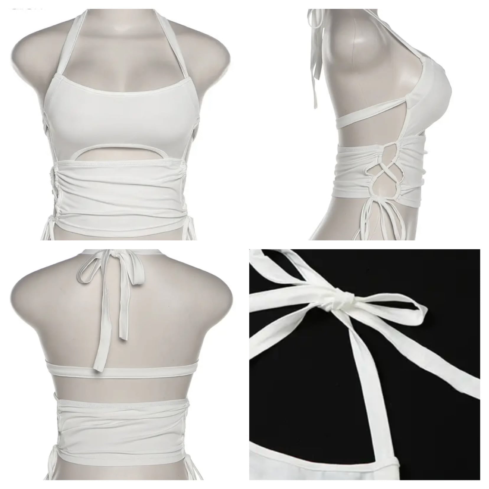 サイドにアクセントのレースアップが施された、白いホルターネックトップスの登場です!海外ファッションのストリート系コーディネートに、一枚で決まる爽やかさをプラスするのにぴったりのトップスです。ピンヒールやスキニーデニムと合わせたら、大人の女性らしいエレガントなコーディネートも可能です。